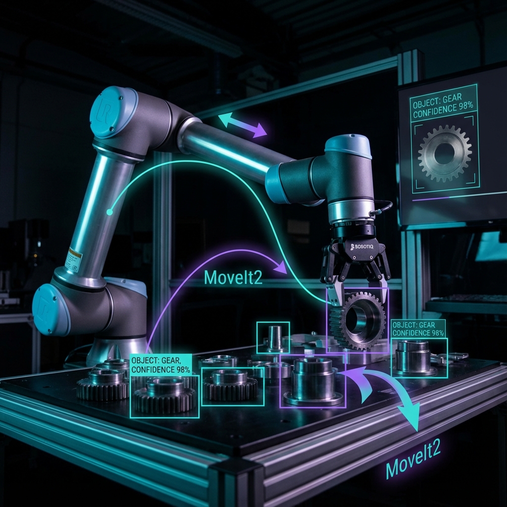 Advanced robotic manipulation system using UR5 robotic arm with Robotiq gripper. Features computer vision-based object detection, inverse kinematics, and collision-aware motion planning.