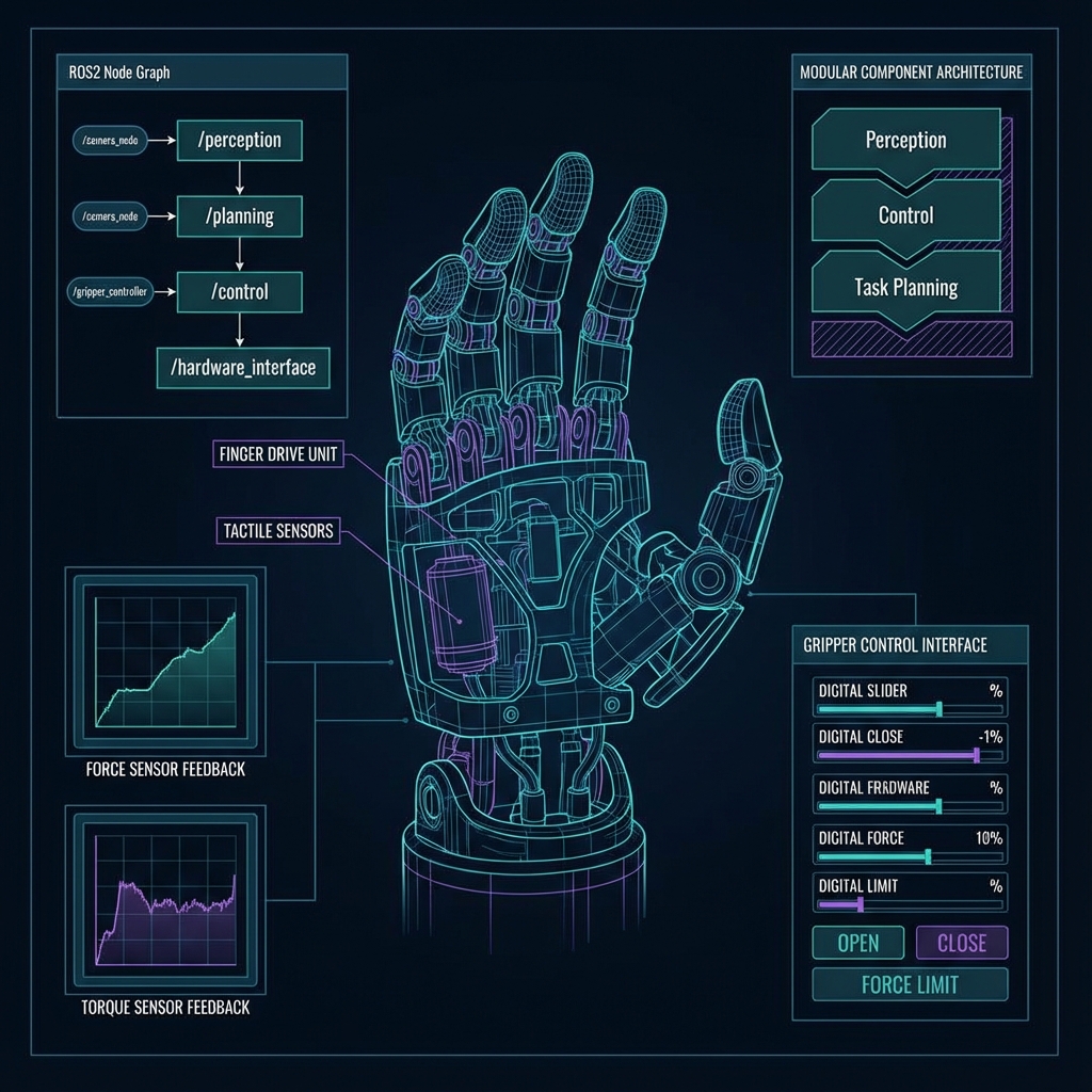 Comprehensive ROS2-based manipulation framework with advanced gripper control, perception pipeline integration, and task orchestration capabilities. Designed for complex multi-step robotics operations with modular architecture for easy extensibility.