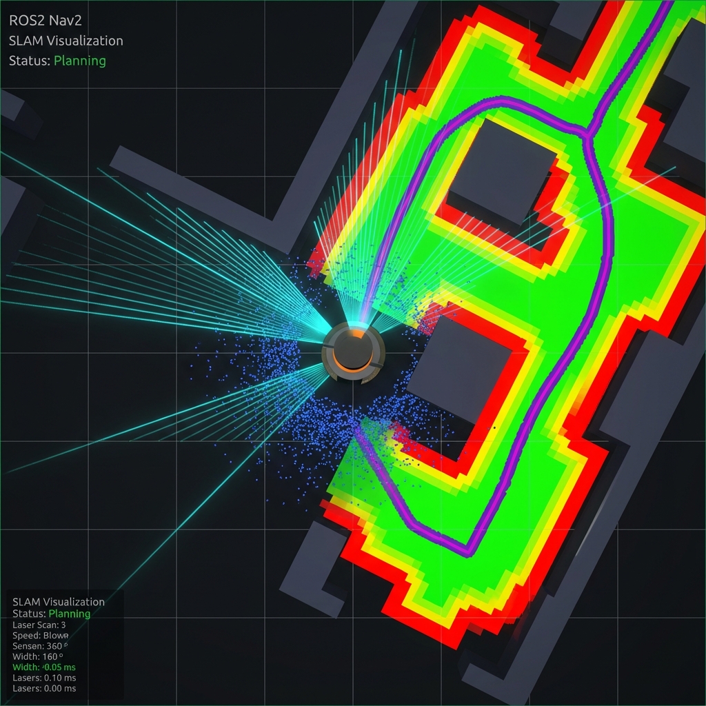 Complete autonomous navigation pipeline featuring SLAM mapping, dynamic obstacle avoidance, and path planning. Built with Nav2 stack, SLAM Toolbox, and advanced algorithms for real-time LiDAR processing and localization in complex environments.